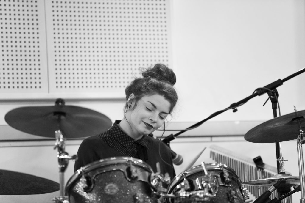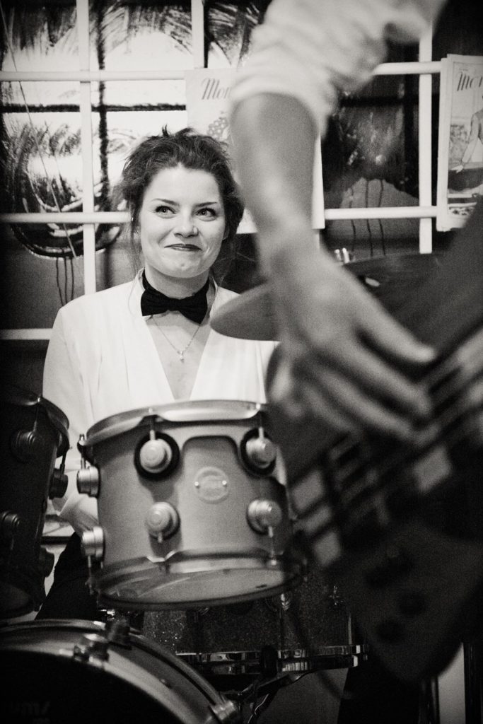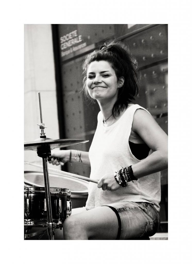 Un batteur seul sur scène avec son micro et son instrument lui a fait comprendre qu’elle allait faire de la batterie sa passion, sa raison d’être et certainement son métier.